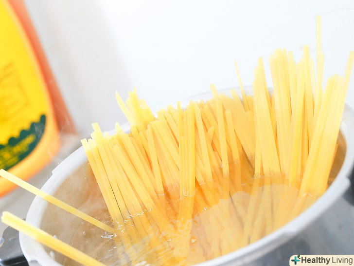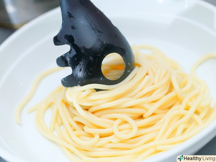 Приготуйте спагетті відповідно до інструкцій на упаковці.крапля оливкової олії допомагає зруйнувати поверхневий натяг і поліпшити приготування їжі. Злийте з готових спагетті воду і відставте в сторону.