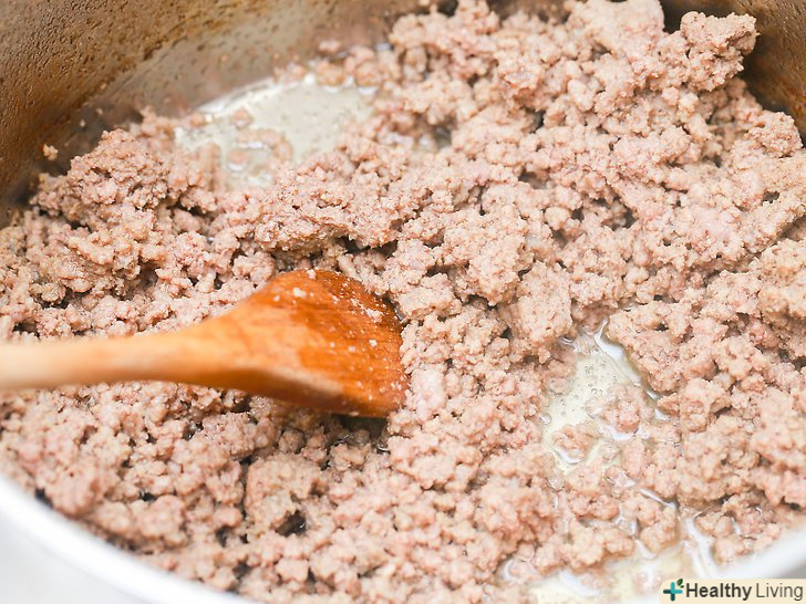 Покладіть в сковороду яловичий фарш.готуйте на середньому вогні, поки фарш злегка не підрум'яниться.