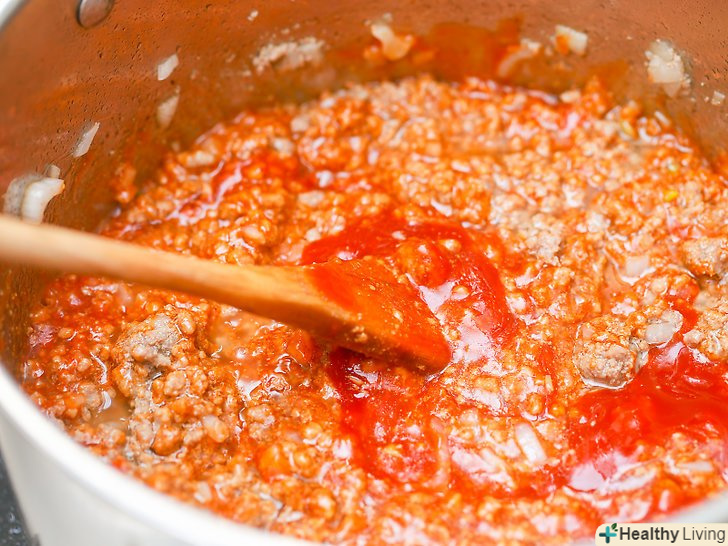 Додайте соус для спагетті і орегано. Добре перемішайте.