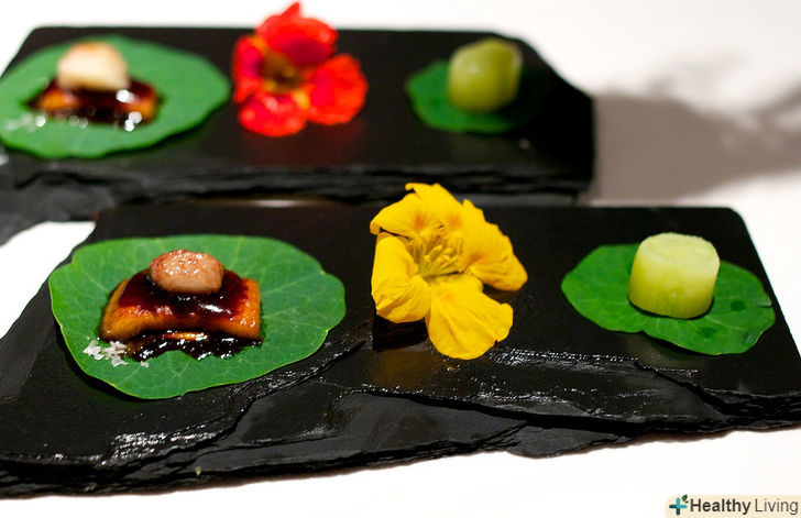 - Додайте пелюстки і листя настурції в масла, приправи або оцет.дрібно їх рубайте, перш ніж додавати. Для прикладу подивіться статтю»Як готувати оцет з квітками настурції".