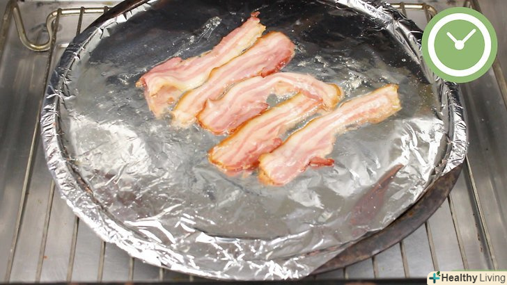 Помістіть жаровню в духовку і залиште бекон готуватися 15 хвилин. можете перевіряти готовність бекону, піднявши алюмінієву фольгу або пергаментний папір.- Якщо бекон підрум'янився і хрусткий, вийміть з духовки.