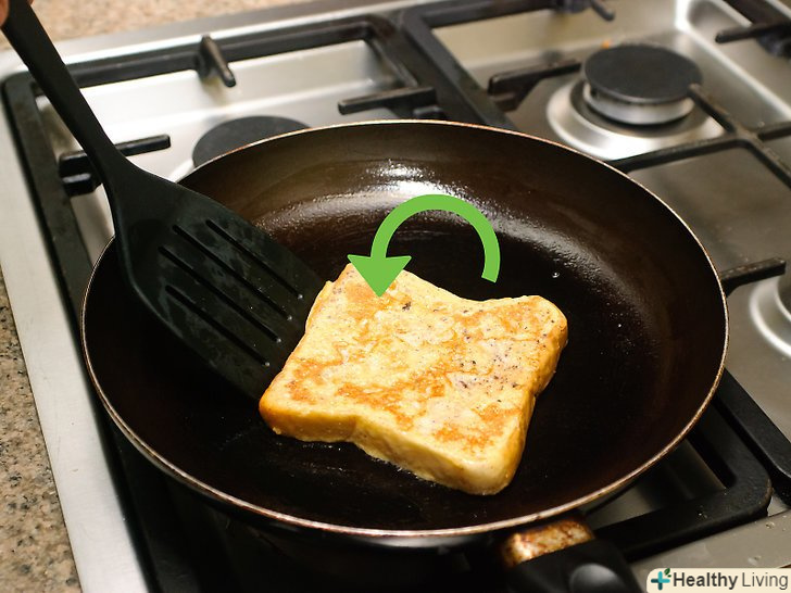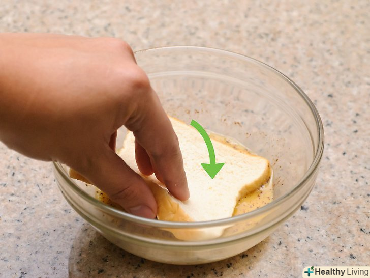 Умочіть кожну скибочку в яєчну суміш.покладіть скибочки на сковороду.