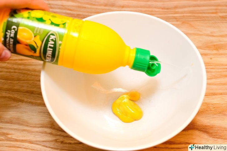 Додайте кислий елемент у миску.цей пункт буде залежати від виду заправки, яку ви готуєте. Найбільш стандартна заправка-заправка, приготована з лимонами. Вичавіть один свіжий лимон в миску. Якщо у вас немає свіжого лимона, ви можете використовувати чотири столові ложки пляшкового лимонного соку. Збийте в мисці лимонний сік з іншими інгредієнтами. Переконайтеся, що все ретельно перемішалося.- Інші варіанти кислого елемента включають червоне вино, біле вино, і яблучний оцет.