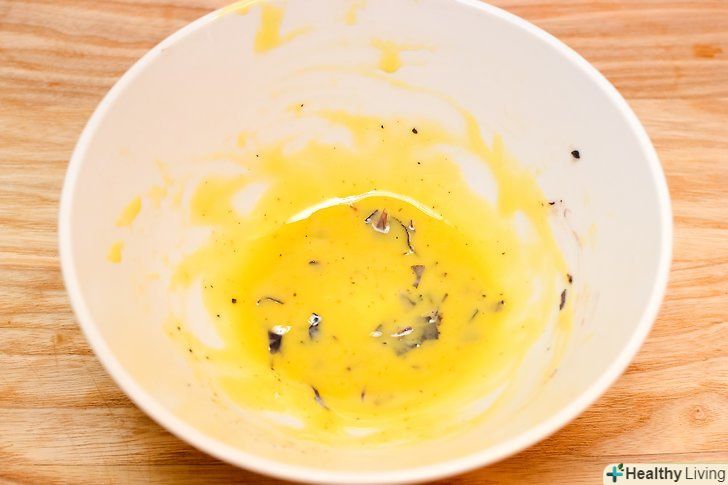 Покладіть трохи гірчиці в невелику миску.покладіть невелику кількість гірчиці (розміром з кінчик вашого пальця). Гірчиця діє як емульгуюча речовина-коли дві рідини не змішуються, такі як вода і масло, гірчиця розбиває їх і допомагає їм змішатися.- Ви також можете додати в миску трохи майонезу (розміром з кінчик вашого пальця). Майонез також є емульгатором і додає приємну кремову текстуру заправці. Тим не менш, для більш дієтичної заправки, пропустіть майонез.