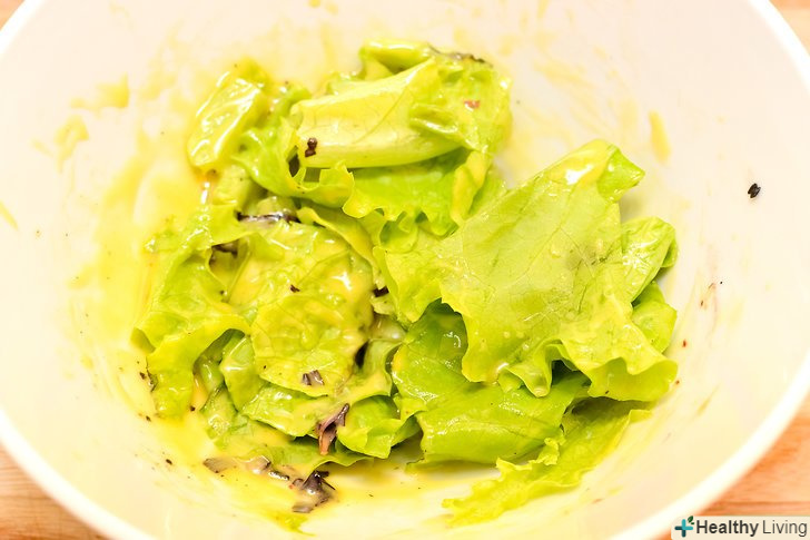 Вилийте заправку на салат.тільки зробіть це правильно, перед їжею, щоб салат не вийшов мокрим. Насолоджуйтесь!