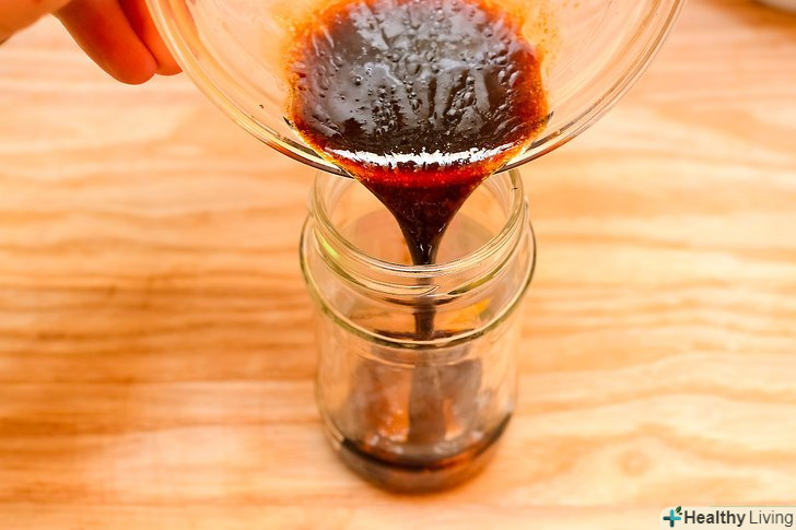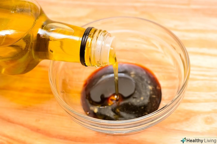 Налийте бальзамічний оцет в миску.змішайте в ній цукор і сіль і збивайте ці інгредієнти, поки вони не розчиняться. Після того як вони розчиняться, додайте перець і часник. Перець, часник, сіль додавати не обов'язково. Збивайте суміш, поки все не змішається.- Якщо ви використовуєте високоякісний бальзамічний оцет, а не дешевший варіант, вам, швидше за все не потрібно додавати цукор. Після того як ви змішали сіль, перець і часник, спробуйте суміш. Додайте цукор за бажанням.