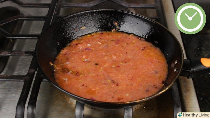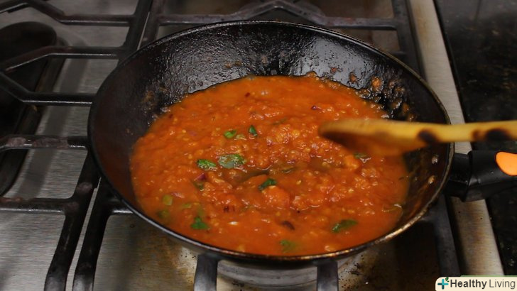 Готуйте соус на невеликому вогні близько 30 хвилин.потримайте сковороду на середньому вогні і дочекайтеся, поки соус почне булькати. Після цього зменшіть вогонь, так щоб соус продовжував злегка булькати. Не накривайте сковороду кришкою і готуйте соус до тих пір, поки він не загусне.- Часто помішуйте соус, щоб він не пригорів.