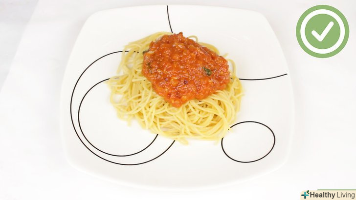 Додайте свій улюблений соус і розкладіть спагетті по тарілках.після того як ви зіллєте воду, заправте спагетті обраним соусом або спочатку розкладіть по тарілках, а потім полийте соусом кожну порцію.- Якщо ви збираєтеся їсти спагетті пізніше, дочекайтеся, поки вони повністю охолонуть, перекладіть в щільно закривається ємність і зберігайте в холодильнику до 3-5 днів.