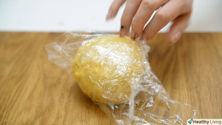 Загорніть тісто в пластикову плівку на 30 хвилин.відірвіть шматок пластикової плівки і повністю загорніть в неї тісто для равіолі. Потримайте тісто в плівці при кімнатній температурі протягом 30 хвилин.- В результаті тісто виділить глютен і не стане жорстким після варіння.