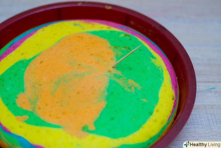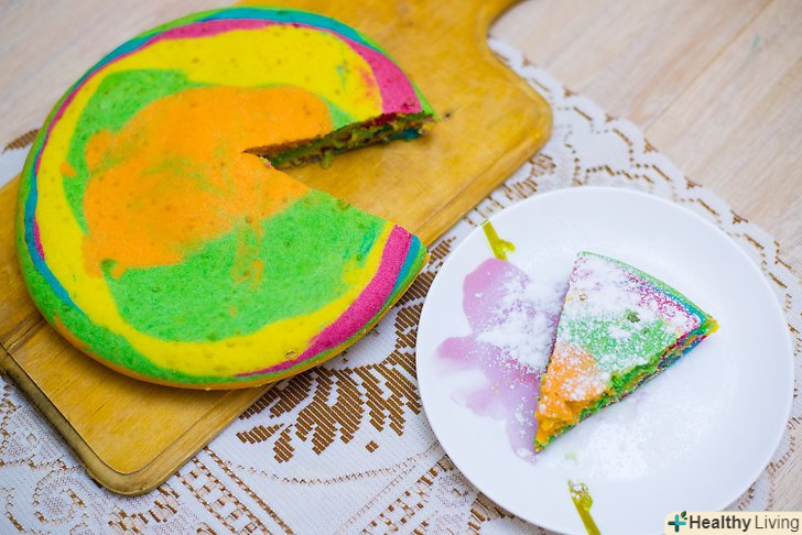 Цей, здається галюциногенним, торт відмінно підходить для будь-якого приводу, включаючи день народження дитини або будь-яке інше свято, де буде оцінена Веселка кольорів. Більш того, це абсолютно чудово! Виходить 6-8 порції.