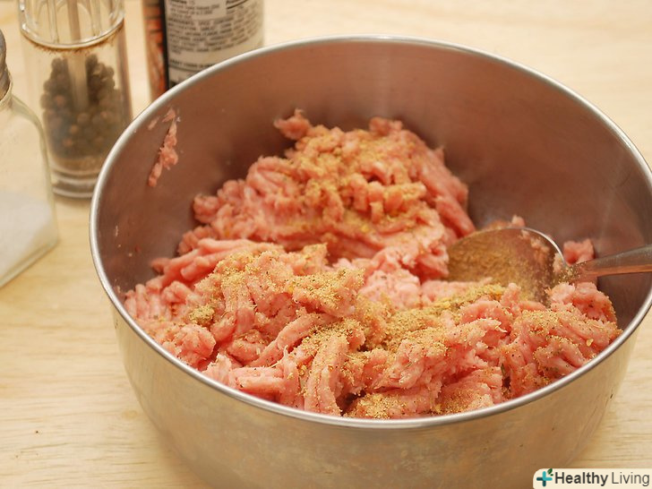 Додайте приправи.- У фаршу з індички ніжний смак, тому спеції додадуть додатковий аромат готовій страві. Спробуйте додати чорний перець і приправи для гриля або ж додайте спеції на свій смак.