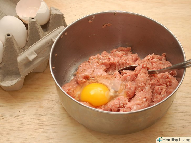 Використовуйте яйця в якості сполучного інгредієнта.- Яйце додасть фаршу додаткову вологу і не дасть м'ясо підсохнути під час готування. Також воно допоможе зв'язати фарш.